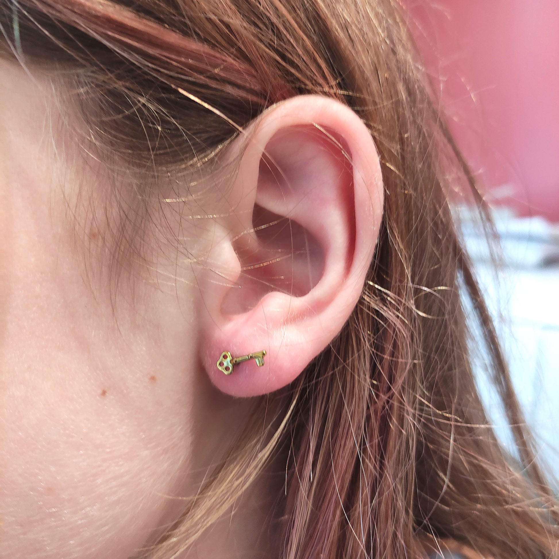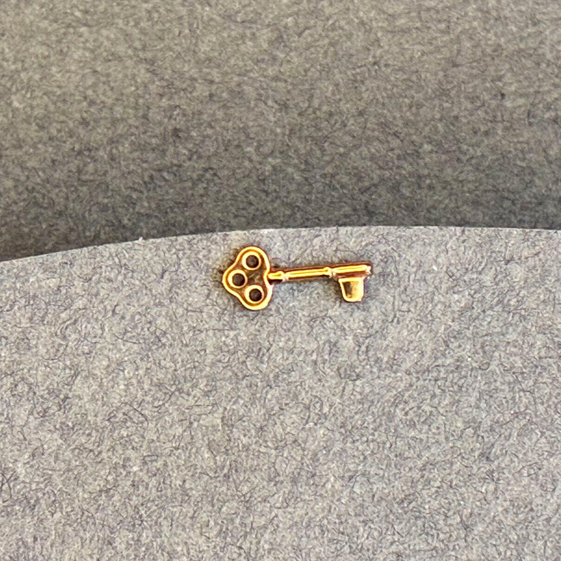 A key-shaped piece that adds a unique and personal touch to your ear styling. Ideal for the lobe, helix or conch, with a delicate and original design. Made of certified titanium and finished with an internal thread and flat back for maximum comfort. Available in gold and silver.